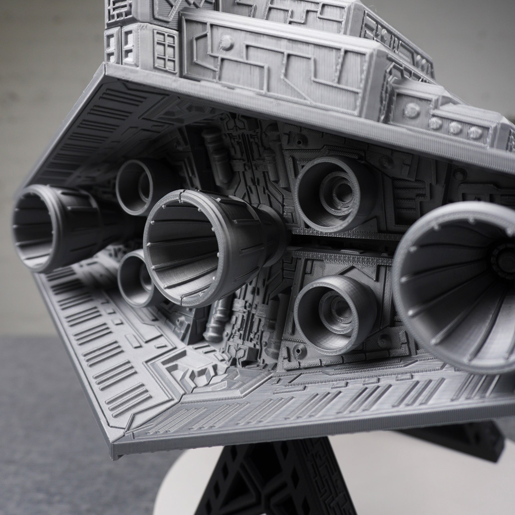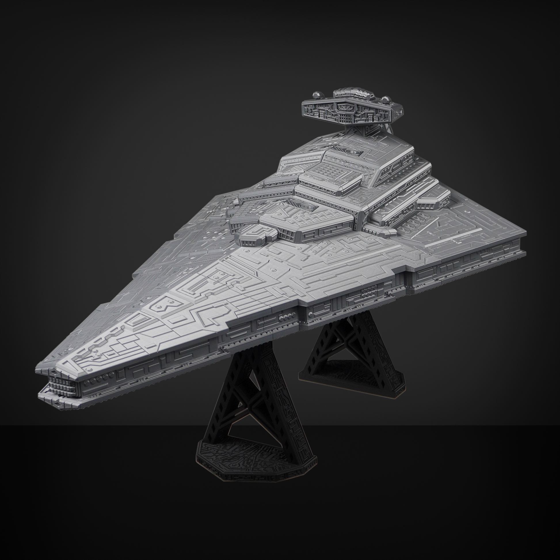 The Titan Destroyer is a high detail, large-format star battleship designed to turn your standard 3D printer into a capital ship factory. Printed in five precision engineered sections that bolt together with easy-to-print bolts, this build assembles cleanly and locks up solid on the included display stand. The result is a show-stopping centerpiece that looks incredible from every angle!